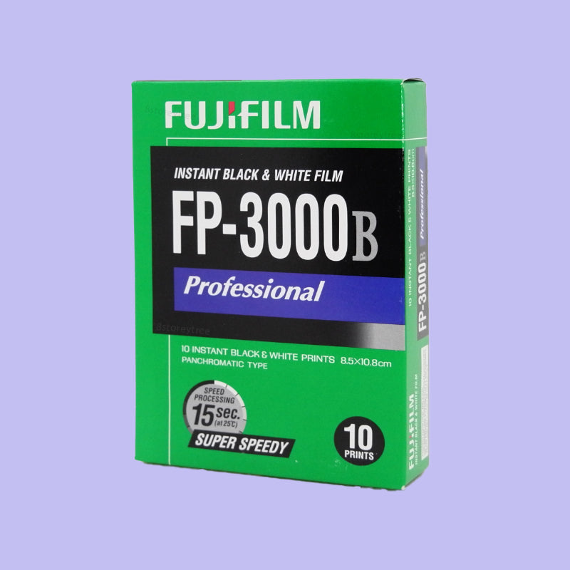 Fujifilm FP-3000B is a black and white peel-apart instant film known for its ultra-high ISO 3000 speed, rich tonal range, and deep contrast. It was popular for low-light shooting, portraiture, and fine detail rendering.