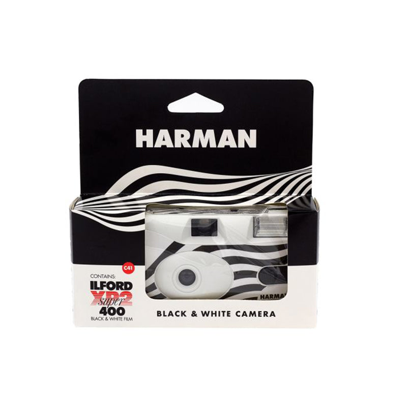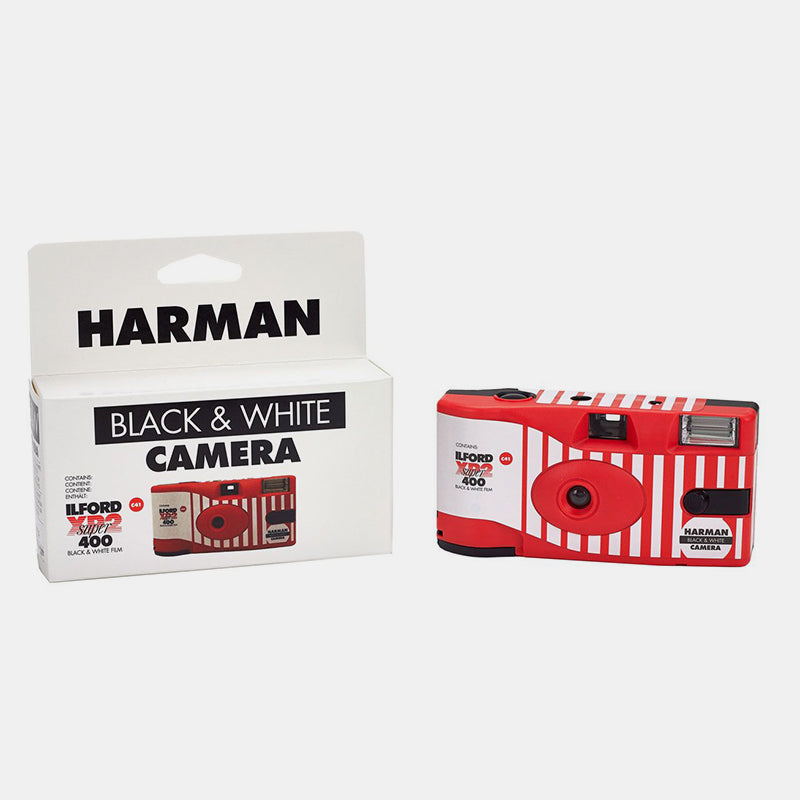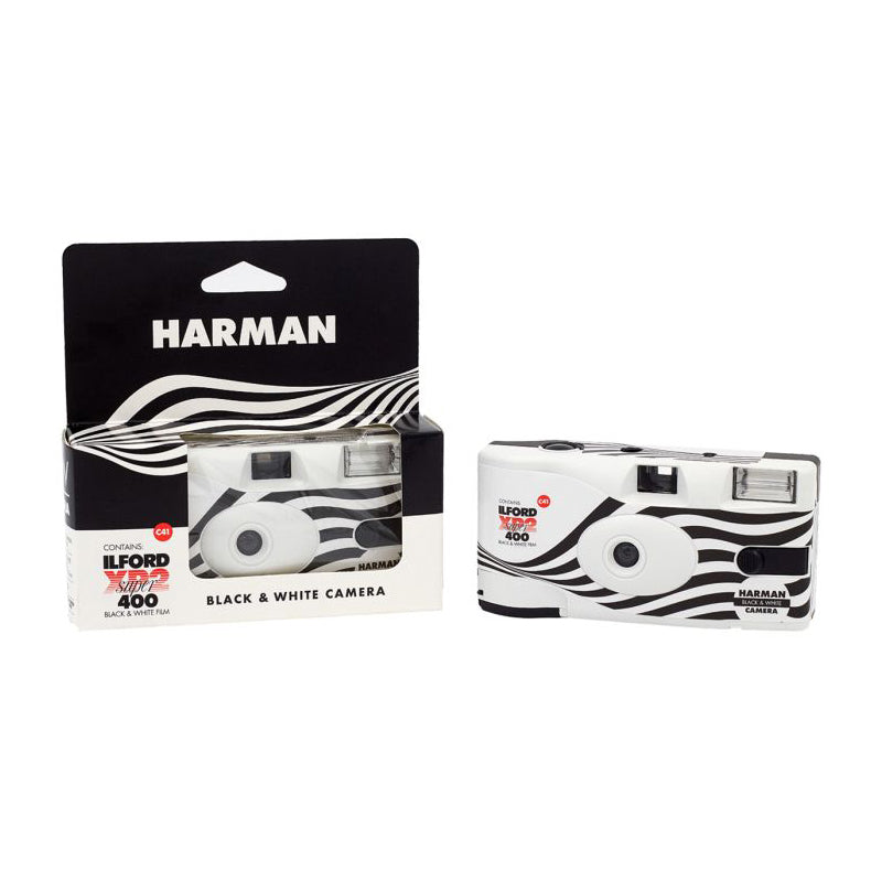 The XP2 Super Disposable Camera with 27 Exposures from Ilford is pre-loaded with ISO 400 XP2 film and provides high contrast, fine grain, black and white images that can be developed at any C41-type photo lab. The camera has a built-in flash, large viewfinder and solid plastic housing.