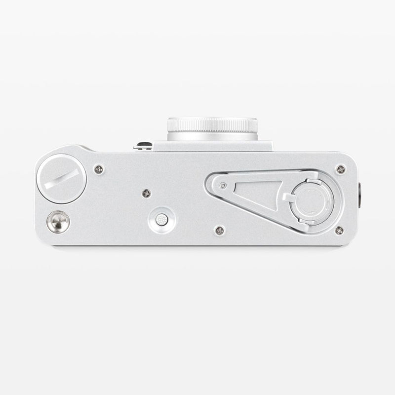 - 32 mm f/2.8 multi-coated glass lens, five elements in five groups, and compact black metal body