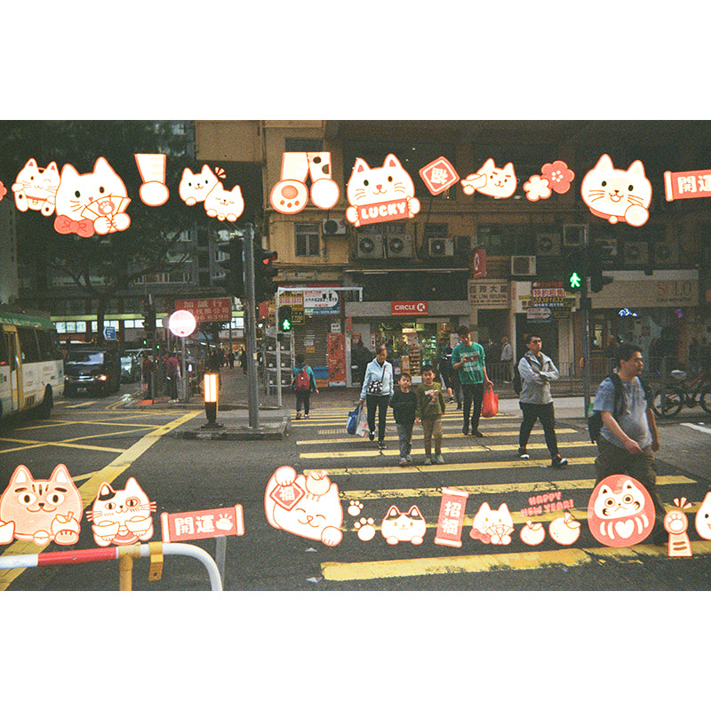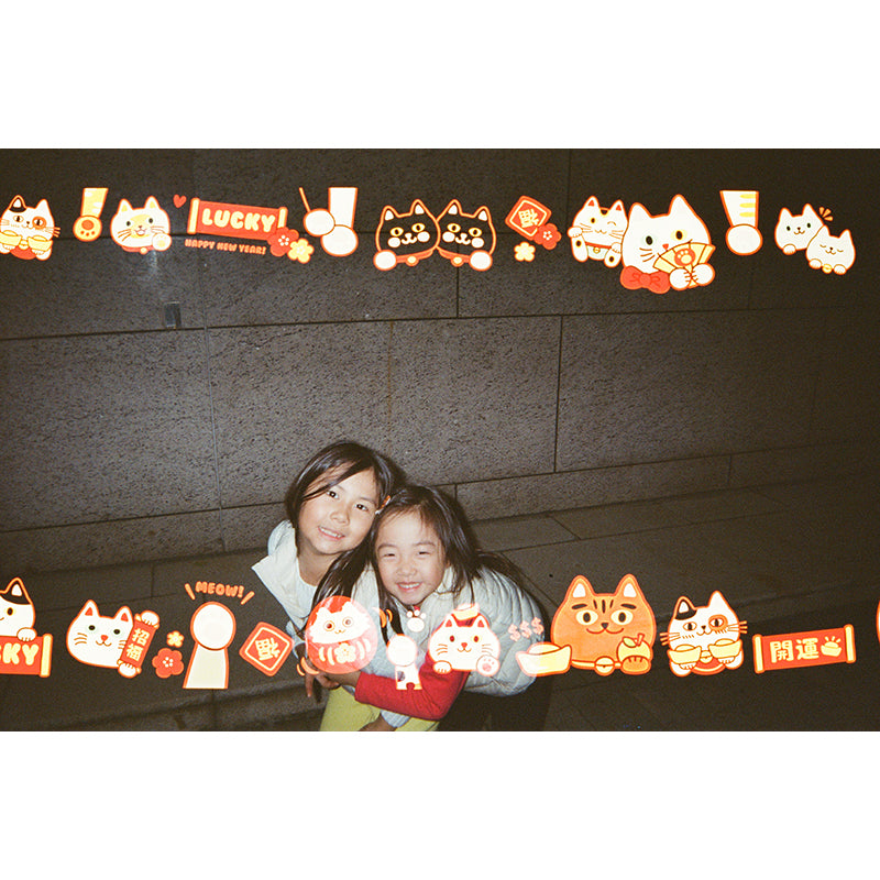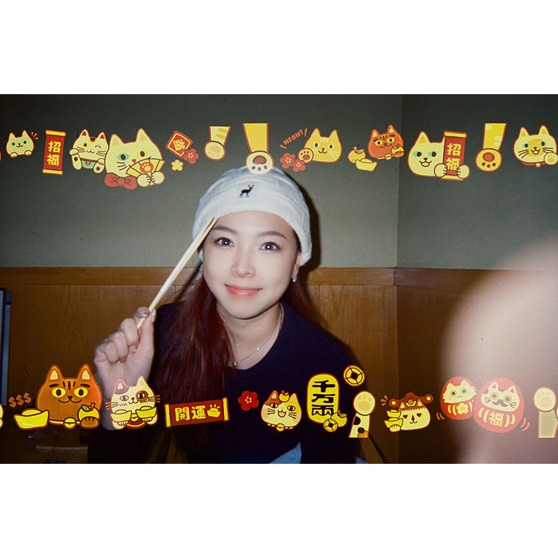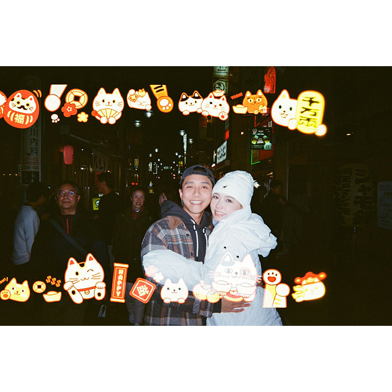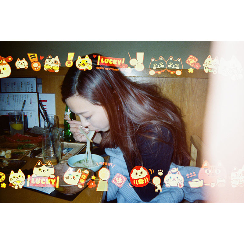 Pre-exposed with a delightful border of lucky cat illustrations, every photo is sprinkled with charm, fortune, and a dash of cuteness. Whether you're snapping street scenes, portraits, or candid memories, these playful cats add a joyful, prosperous feel to your shots.