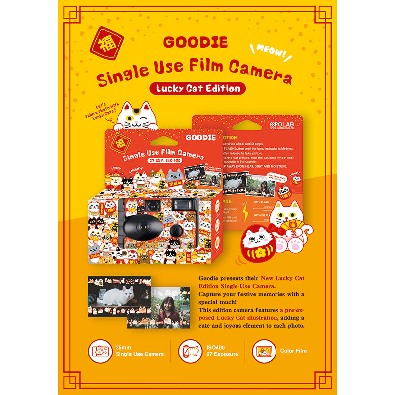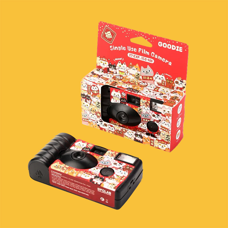 Meow your way into festive fun with the GOODIE Lucky Cat Edition disposable film camera!